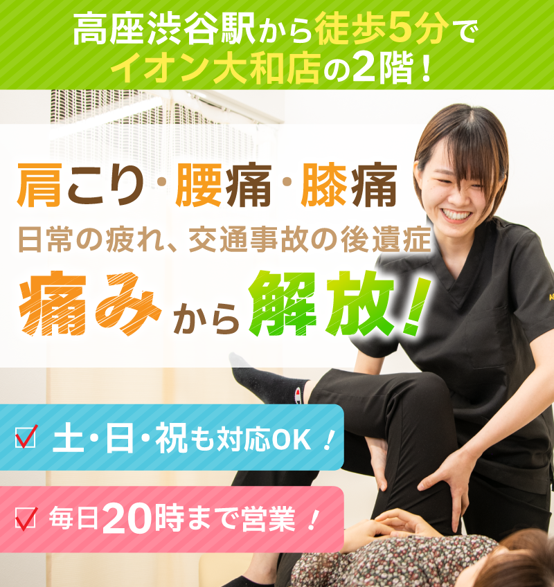 あおば総合治療院 イオン大和院でございます。